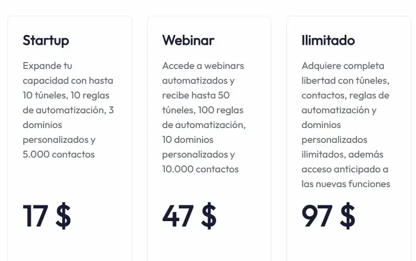 para crear tus páginas, funnels y correos.